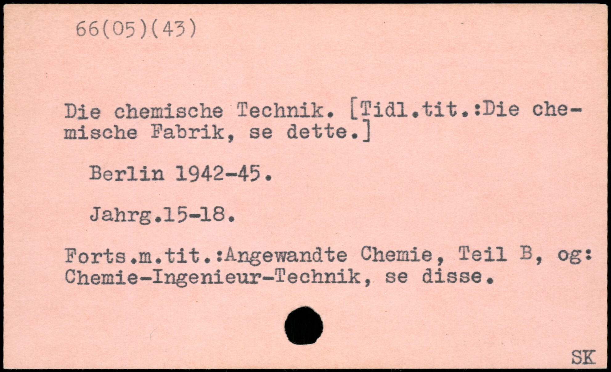 Die chemische Technik. [Tidl.tit.:Die chemische Fabrik, se dette.]