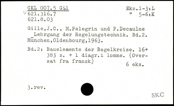 Gille,J.C., M.Pelegrin und. P.Decaulne Lehrgang der Regelungstechnik.