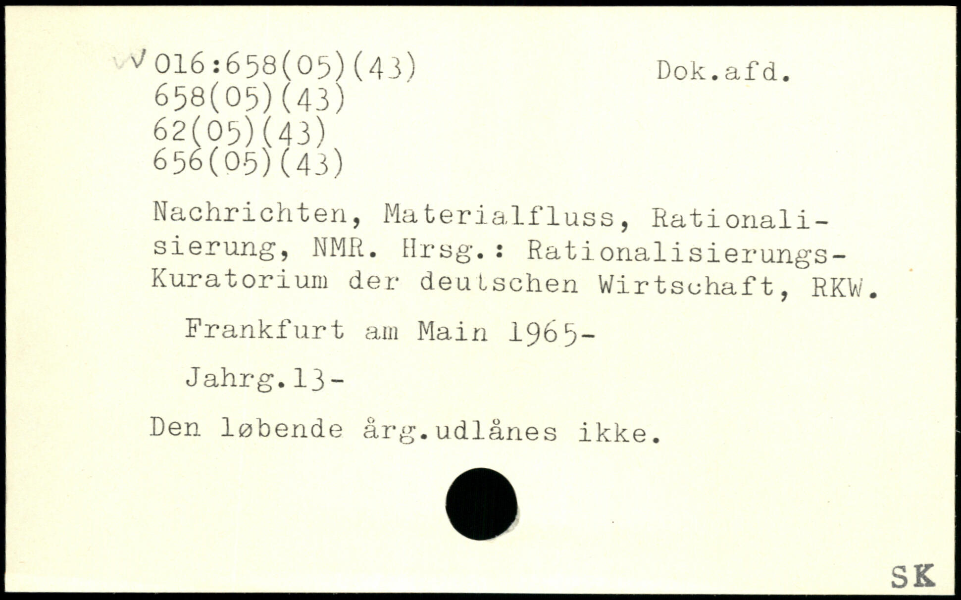 Nachrichten, Materialfluss, Rationali-sierung, NMR. Hrsg.: Rationalisierungs-Kuratorium der deutschen Wirtschaft, RKW.