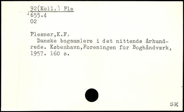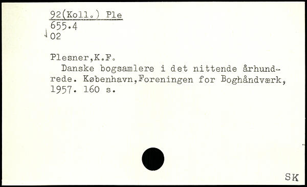 Piesner,K.lh Danske bogsamlere i det nittende århundrede.