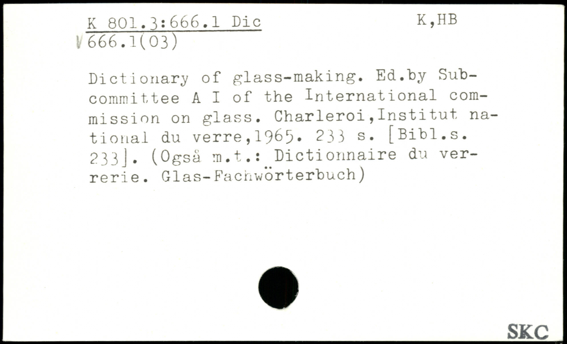 Dictionary of glass-making. Ed."by Subcommittee A I of the International commission on glass.