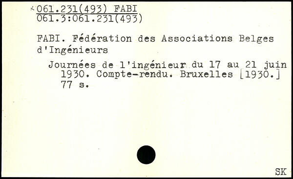 FABI. fédération des Associations Belges d. Ingénieurs Journées de l’ingénieur du 17 au 21 juin 1930. Compte-rendu. Bruxelles j_1930.J