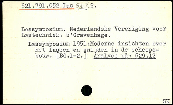 Lassymposium. Nederlandske Vereniging voor Lastecliniek. s ' G-ravenhage. Lassymposium 1951ïModerne inzichten over het lassen en snij&en in de scheeps-houw. [