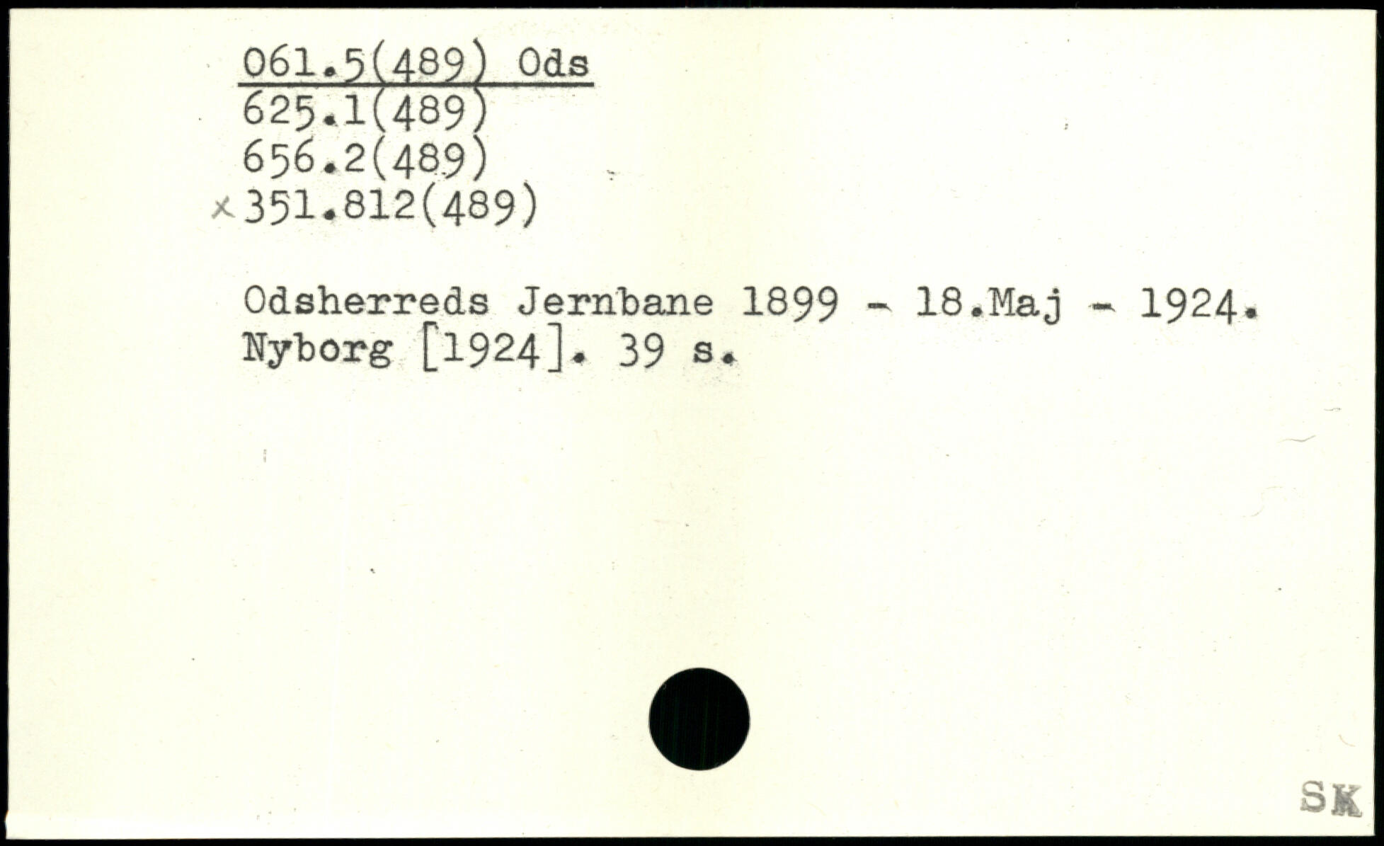 Odsherreds Jernbane 1899 - 18.Maj — 1924. Nyborg [1924]