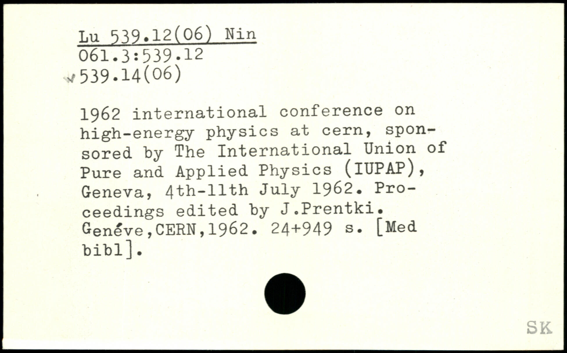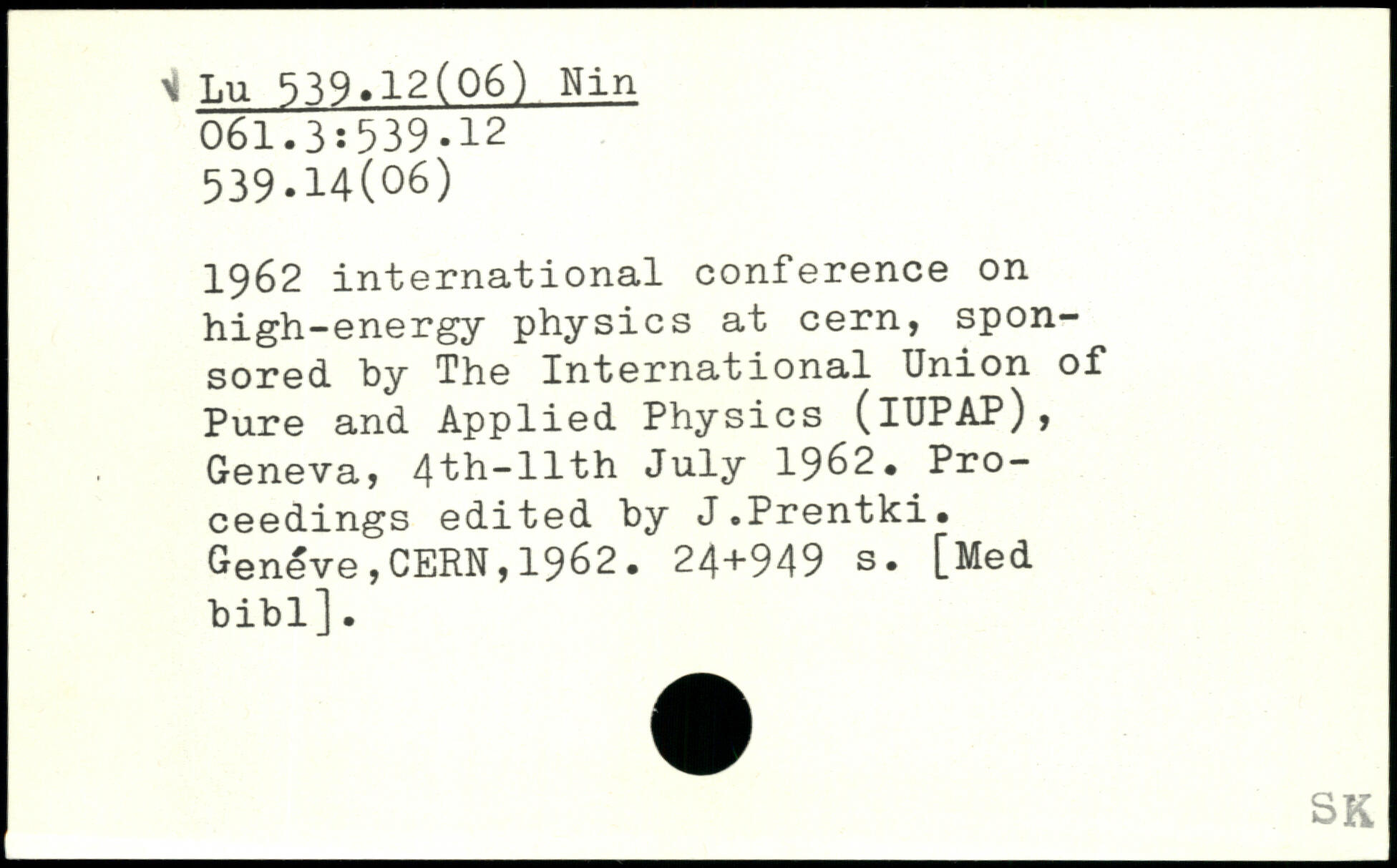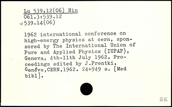 1962 international conference on high-energy physics at cern, sponsored by The International Union of Pure and Applied Physics (lUPAP), Geneva, 4th-llth July 1962. Proceedings edited by J.Prentki.