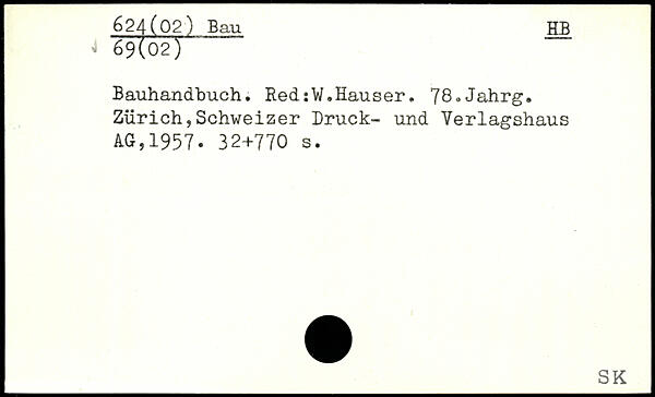 Bauhandbuch. Red:W.Hauser. 78.Jahrg, Zürich,Schweizer Druck- und Verlagshaus AG,1957.