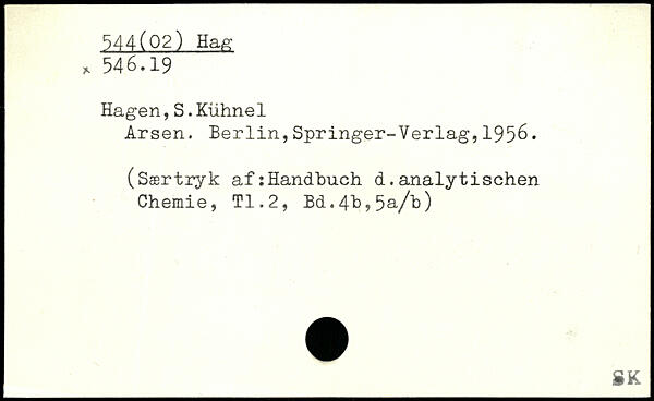 Hagen,S.Kühnei Arsen. Berlin,Springer-Verlag,195&.