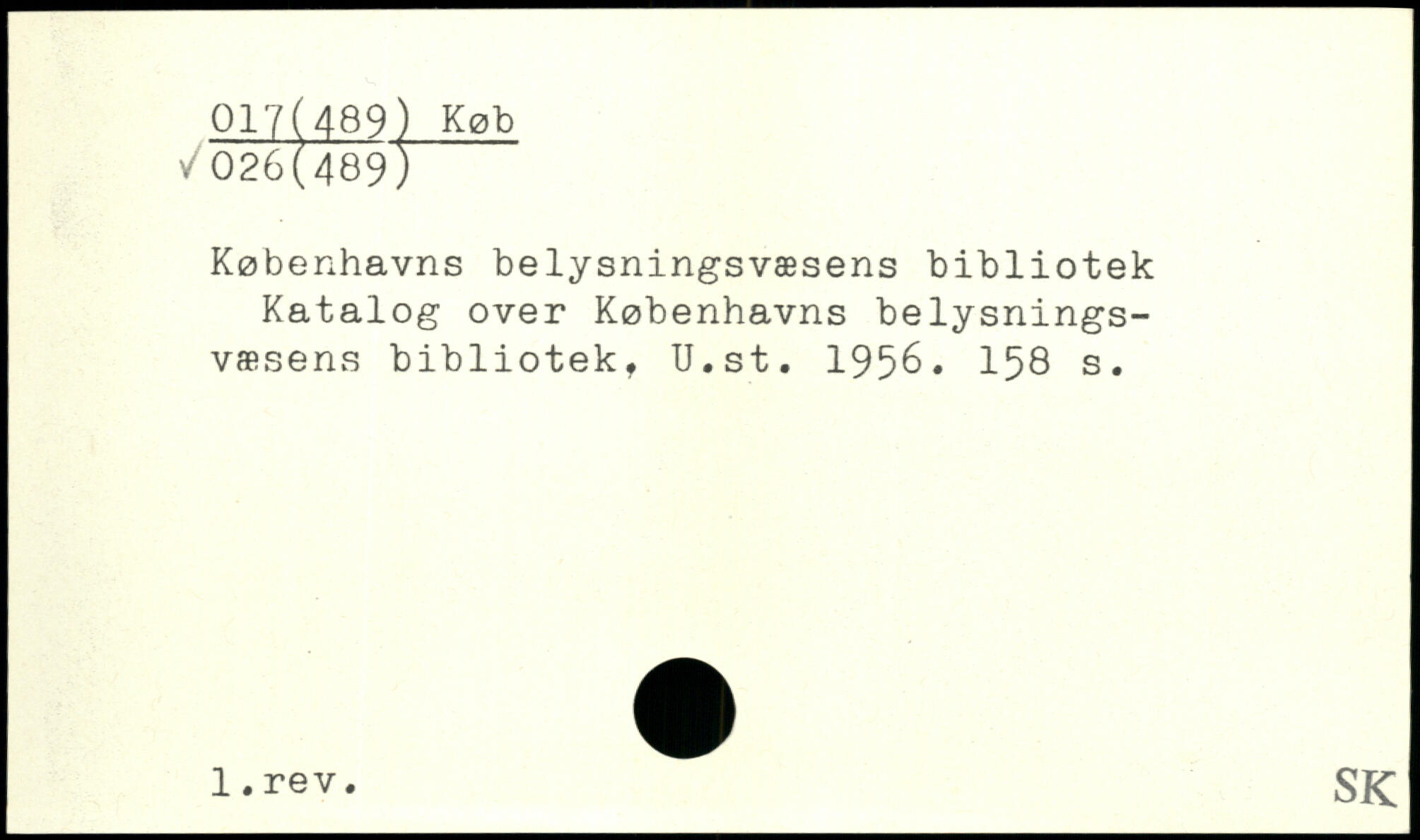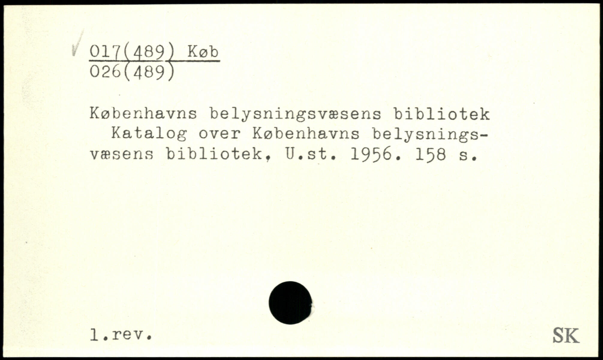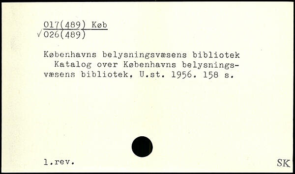 Københavns belysningsvæsens bibliotek Katalog over Københavns belysningsvæsens bibliotek. U.st. 1956.