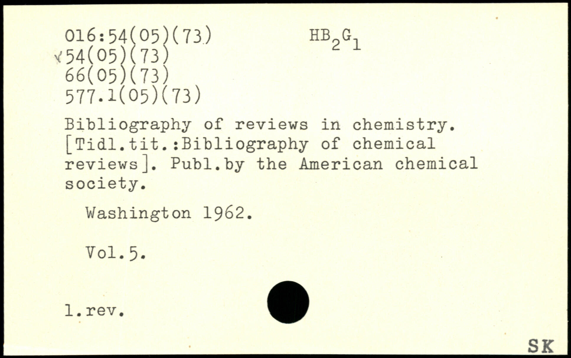 Bibliography of reviews in chemistry.