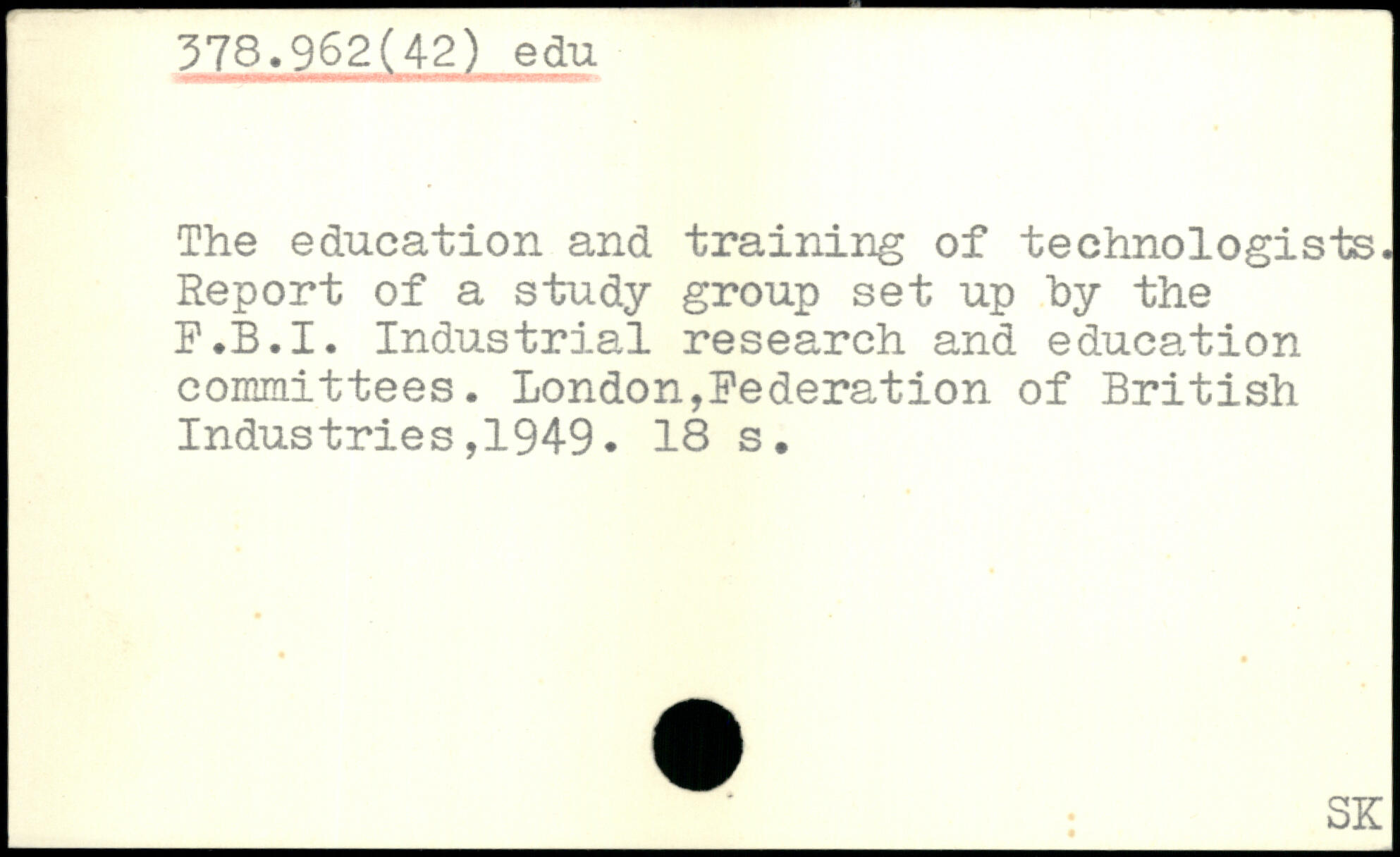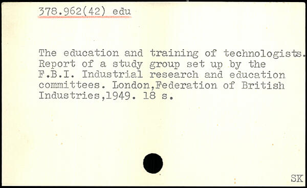 The education and training of technologists. Report of a study group set up by the F.B.I. Industrial research and education committees.