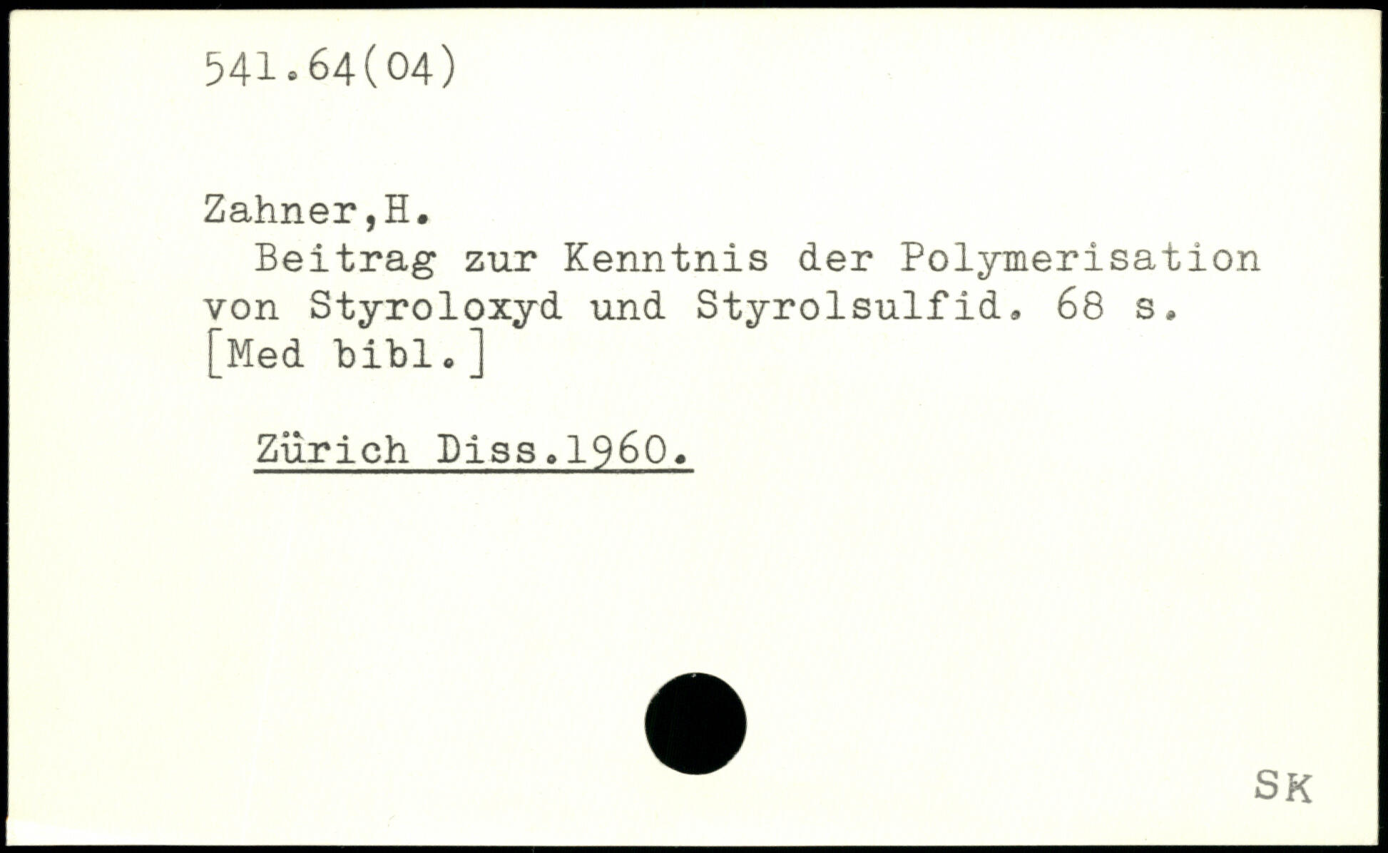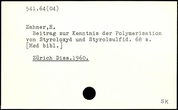 Beitrag zur Kenntnis der Polymerisation von Styroloxyd und Styrolsulfid.