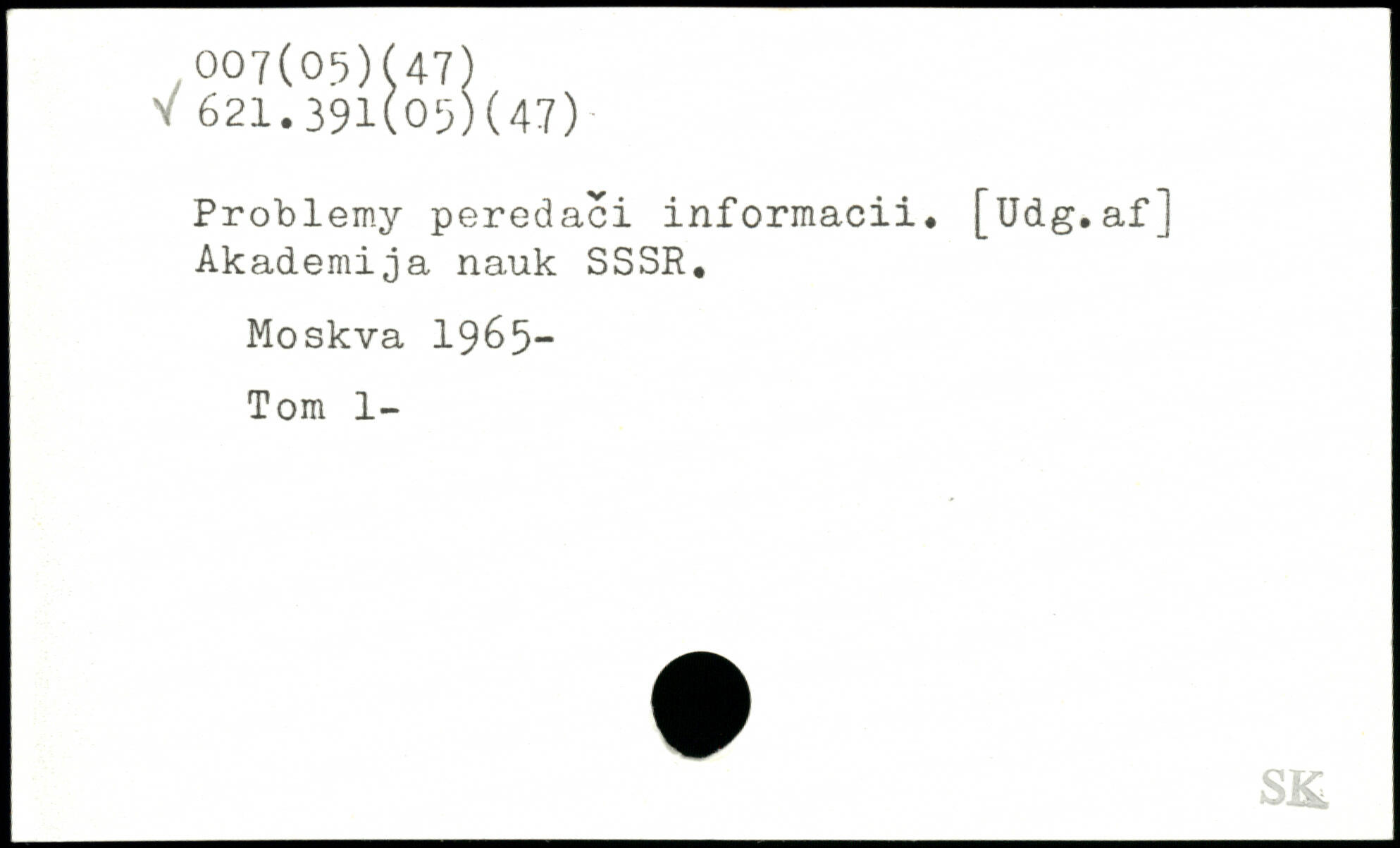 Prollemy peredaci inforinacii. [Udg.af] Akademija nauk SSSR.