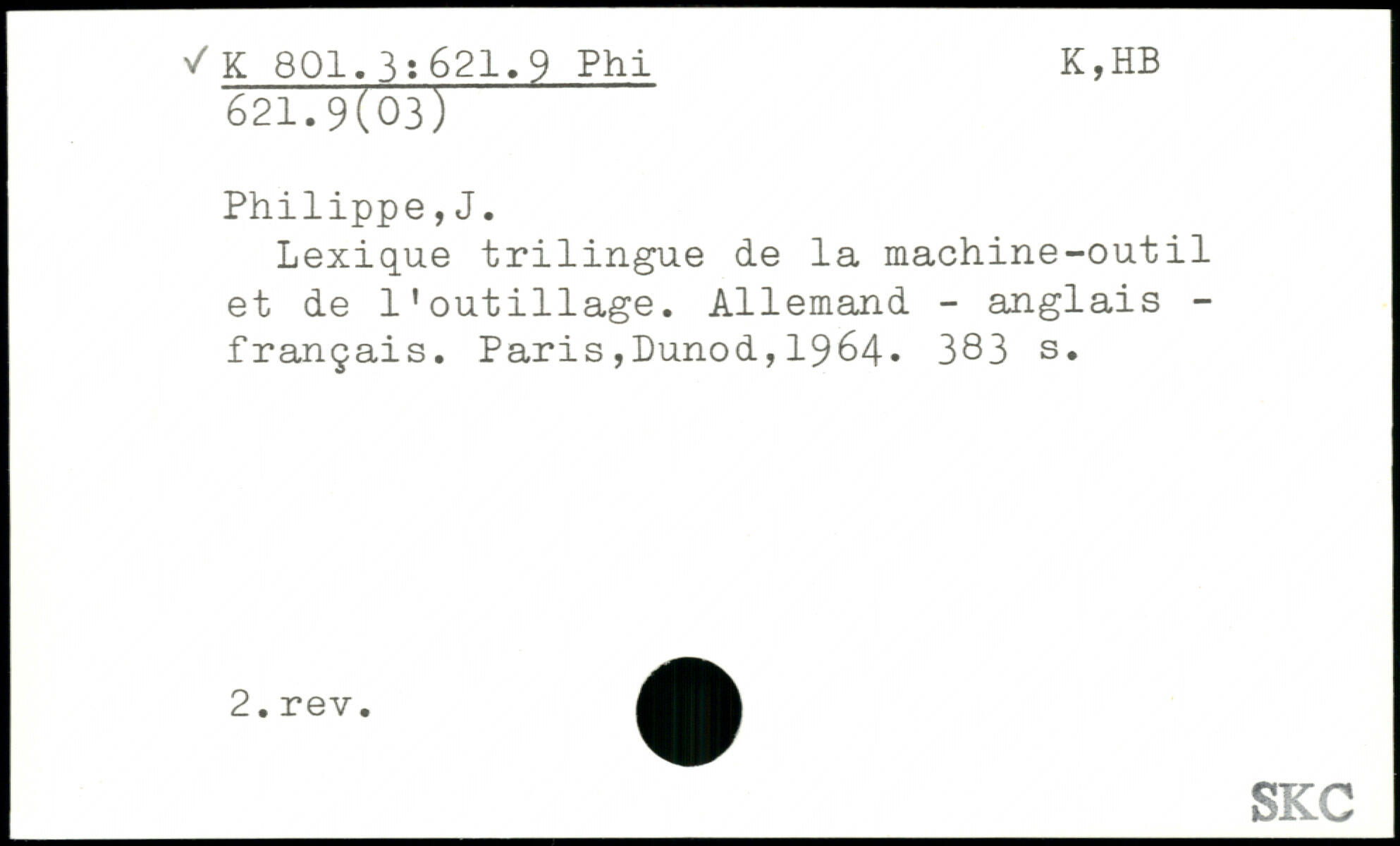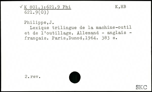 Lexique trilingue de la machine-outil et de l'outillage. Allemand - anglais -français.