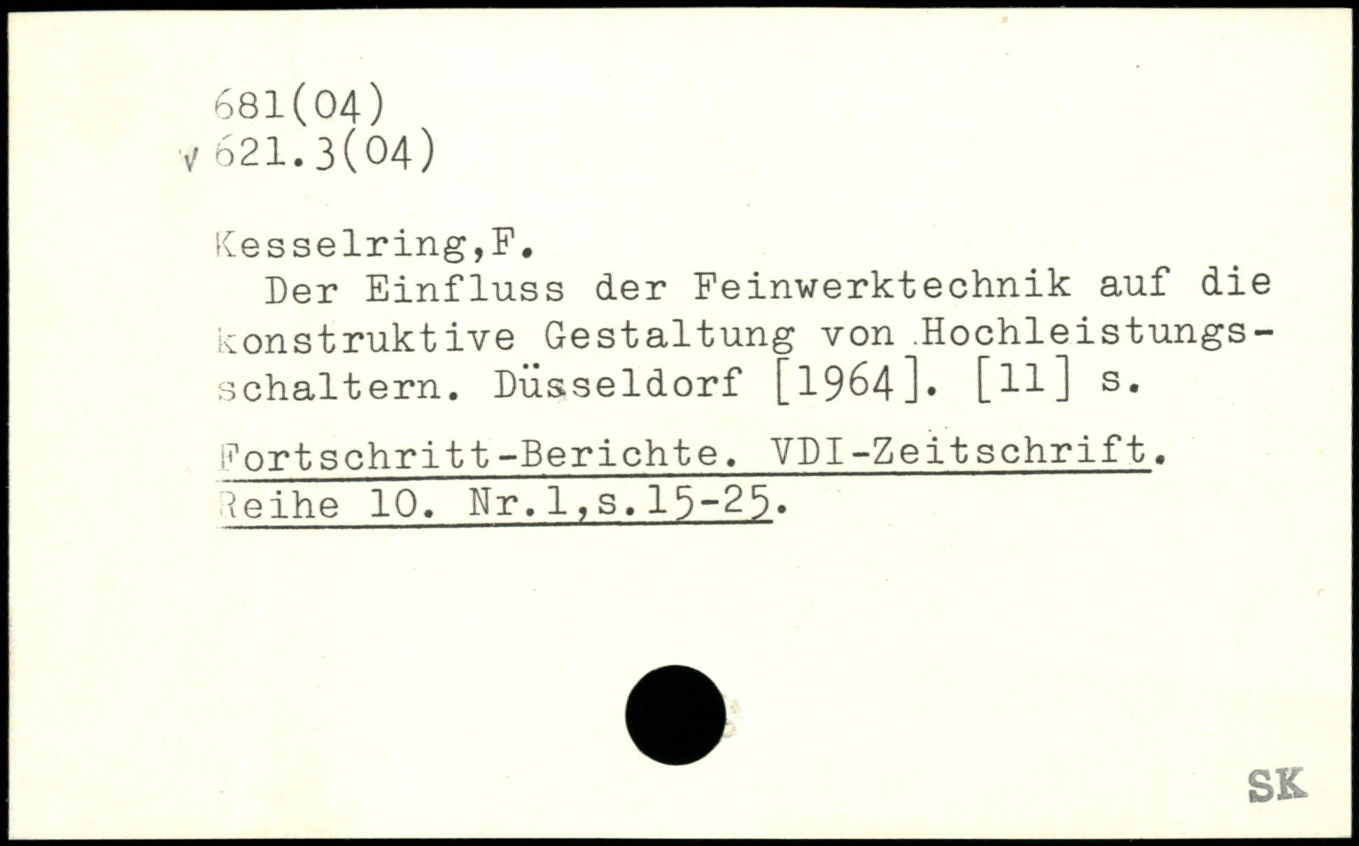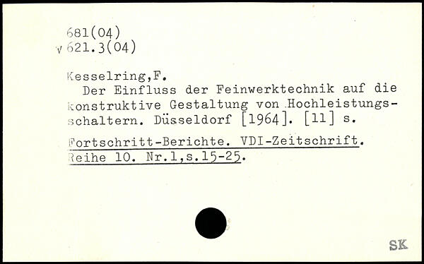 Der Einfluss der Feinwerktechnik auf die konstruktive Gestaltung von .Hochleistungsschaltern. Düsseldorf [1964]. [ll] s, Kortschritt-Berichte. VDI-Zeitschrift. leihe 10. Nr.l,s.15-25.