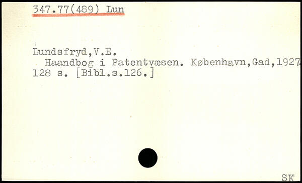Lunds f ryd, V.E. Haandbog i Patentvæsen.