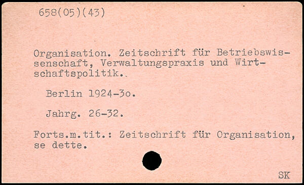 Organisation. Zeitschrift für Betriebswis-senschaft, Verwaltungspraxis und Wirtschaftspolitik..