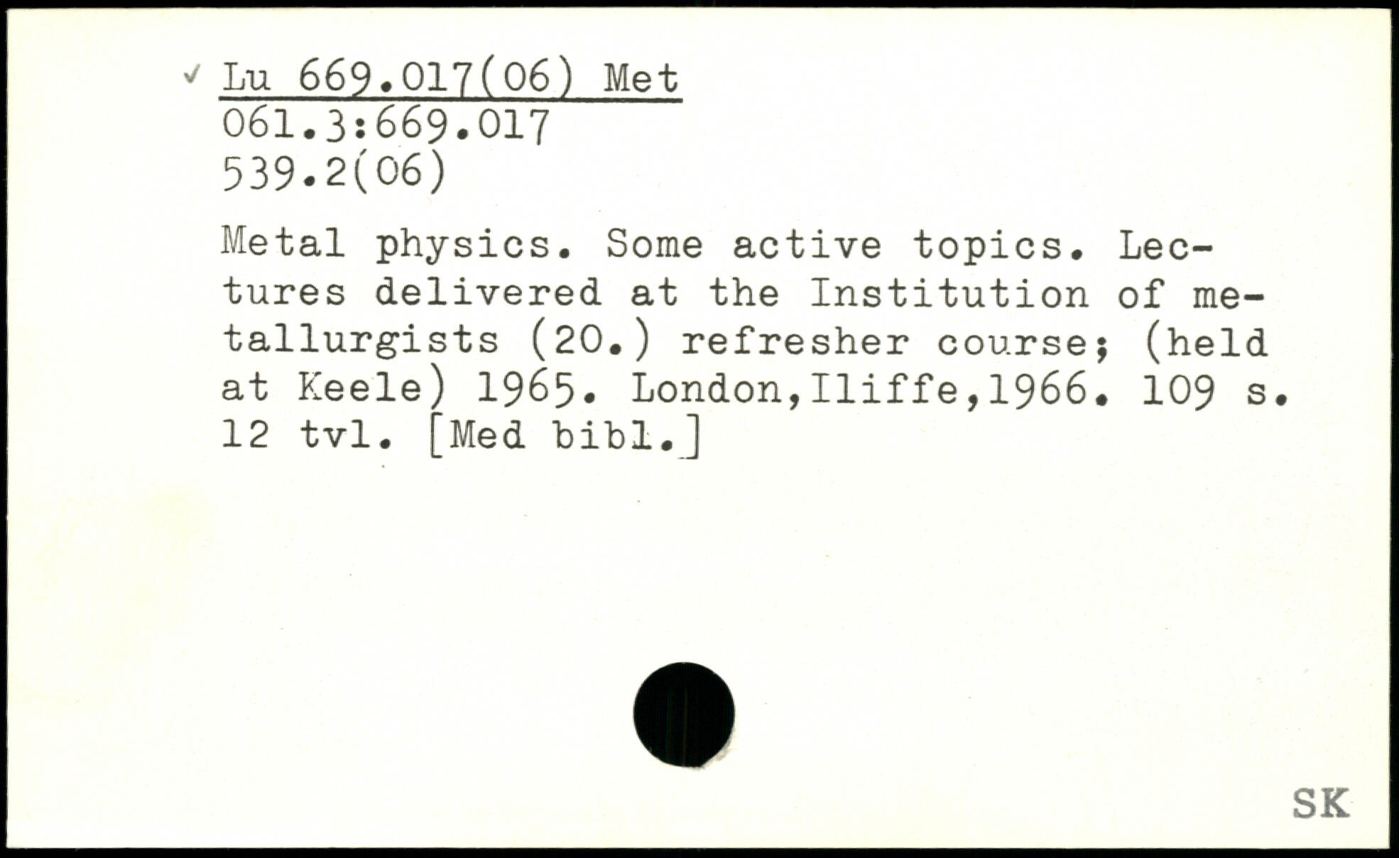 Metal physics. Some active topics. Lectures delivered at the Institution of metallurgists (20.) refresher course; (held at Keele) 1965.