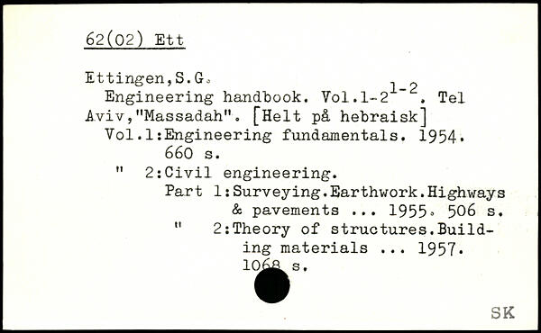 Ettingen,S.Go ^ ^ Engineering handbook, Vol.l-2x~ , Tel Aviv,"Massadah". [Helt pâ hebraisk]