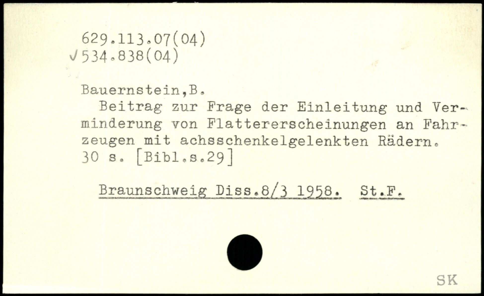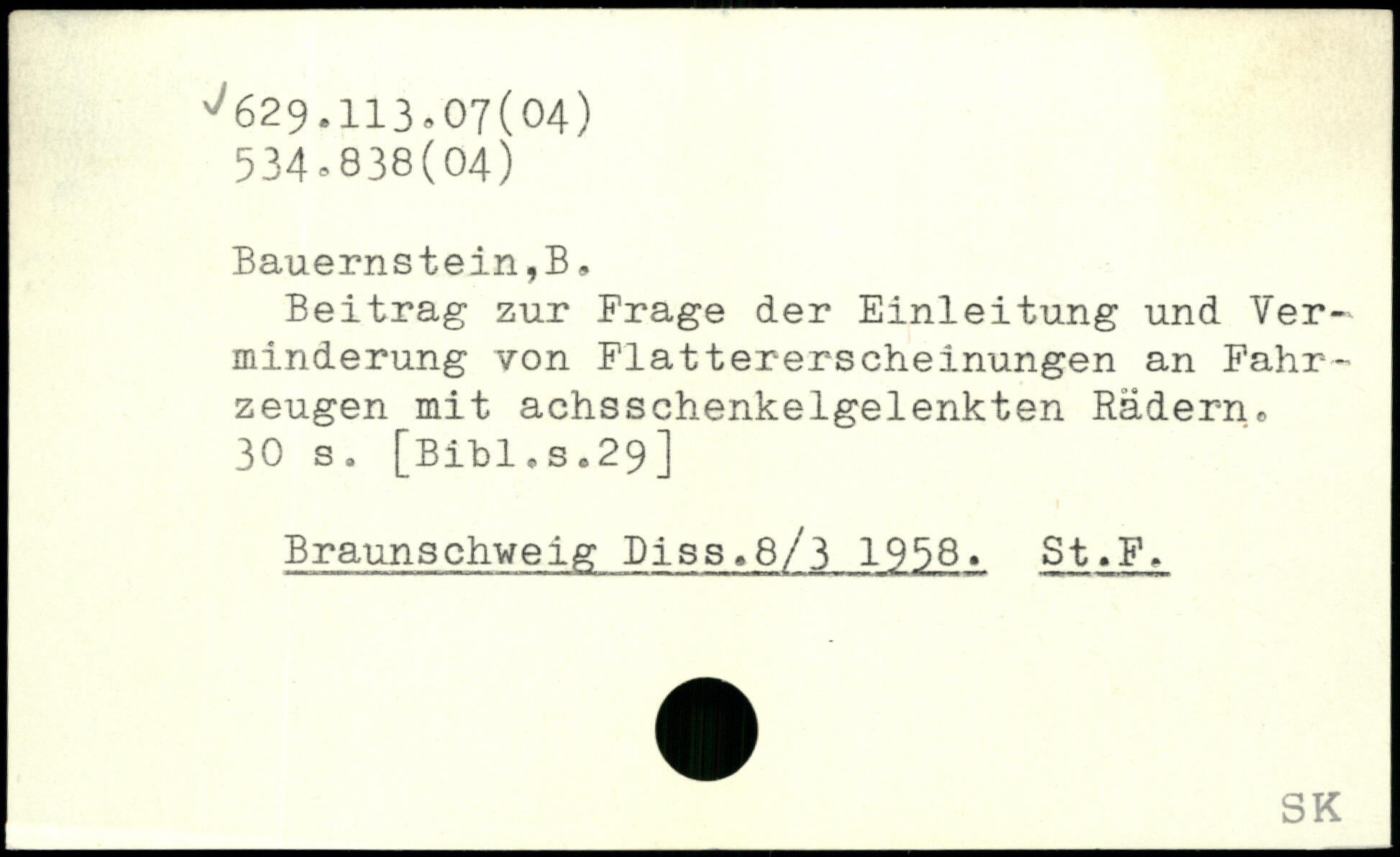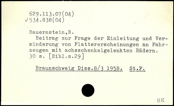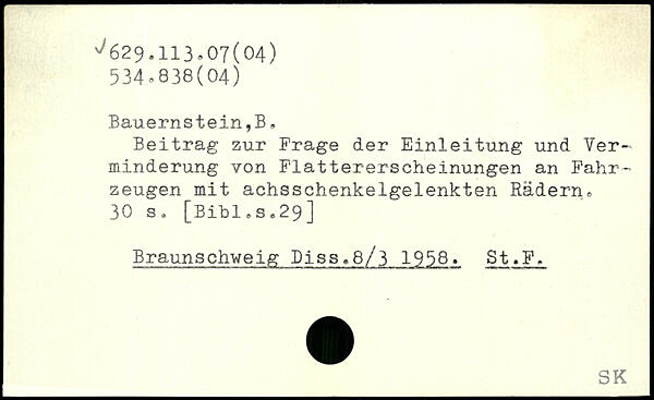 Beitrag zur Frage der Einleitung und Verminderung von Flattererscheinungen an Fahrzeugen mit achsschenkelgelenkten Rädern