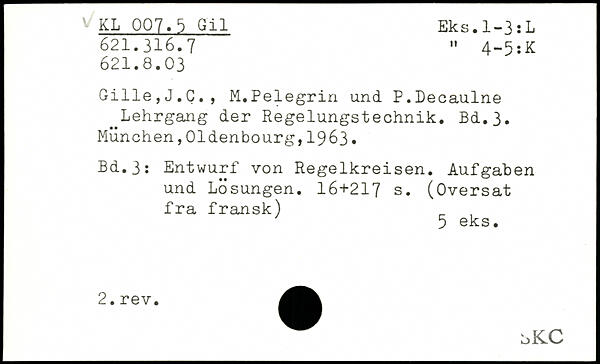 Gille,J.Ç., M.Pelegrin und. P.Decaulne Lehrgang der Regelungstechnik.