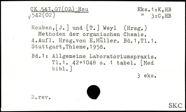 Houben,[J.] und [T.] Weyl (Hrsg.) Methoden der organischen Chemie.