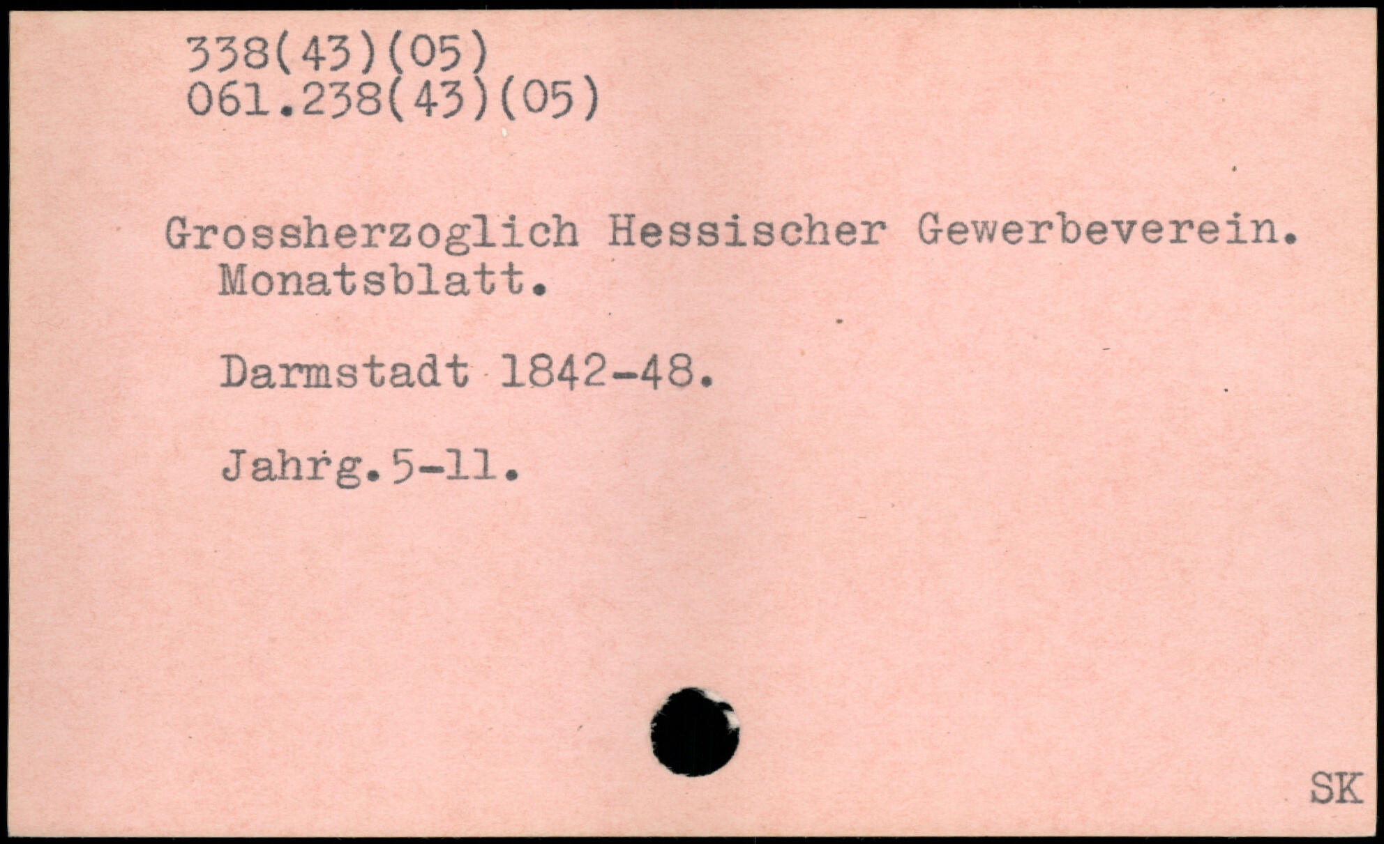 Grossherzoglich Hessischer Gewerbeverein. Monatsblatt. Darmstadt 1842-48. Jahrg.5-11.