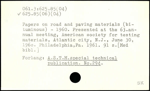 Papers on road and paving materials (bituminous) - 1960. Presented at the 63,annual meeting^ American society for testing materials, Atlantic city, N.J., June 30, 1960. Philadelphia,Pa. 1961.