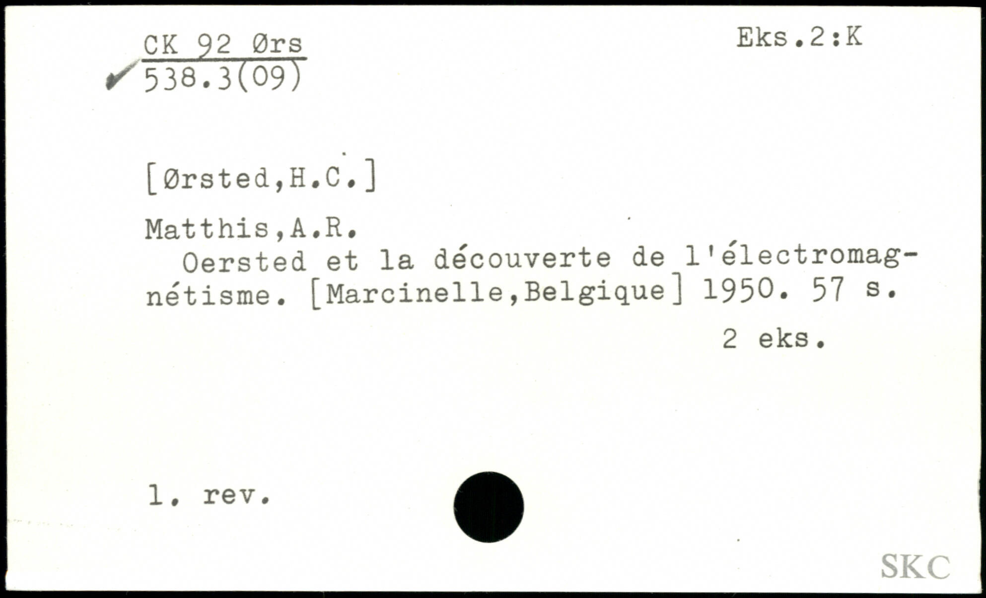 Oersted et la découverte de l'électromagnétisme. [Marcinelle,Belgique] 1950.