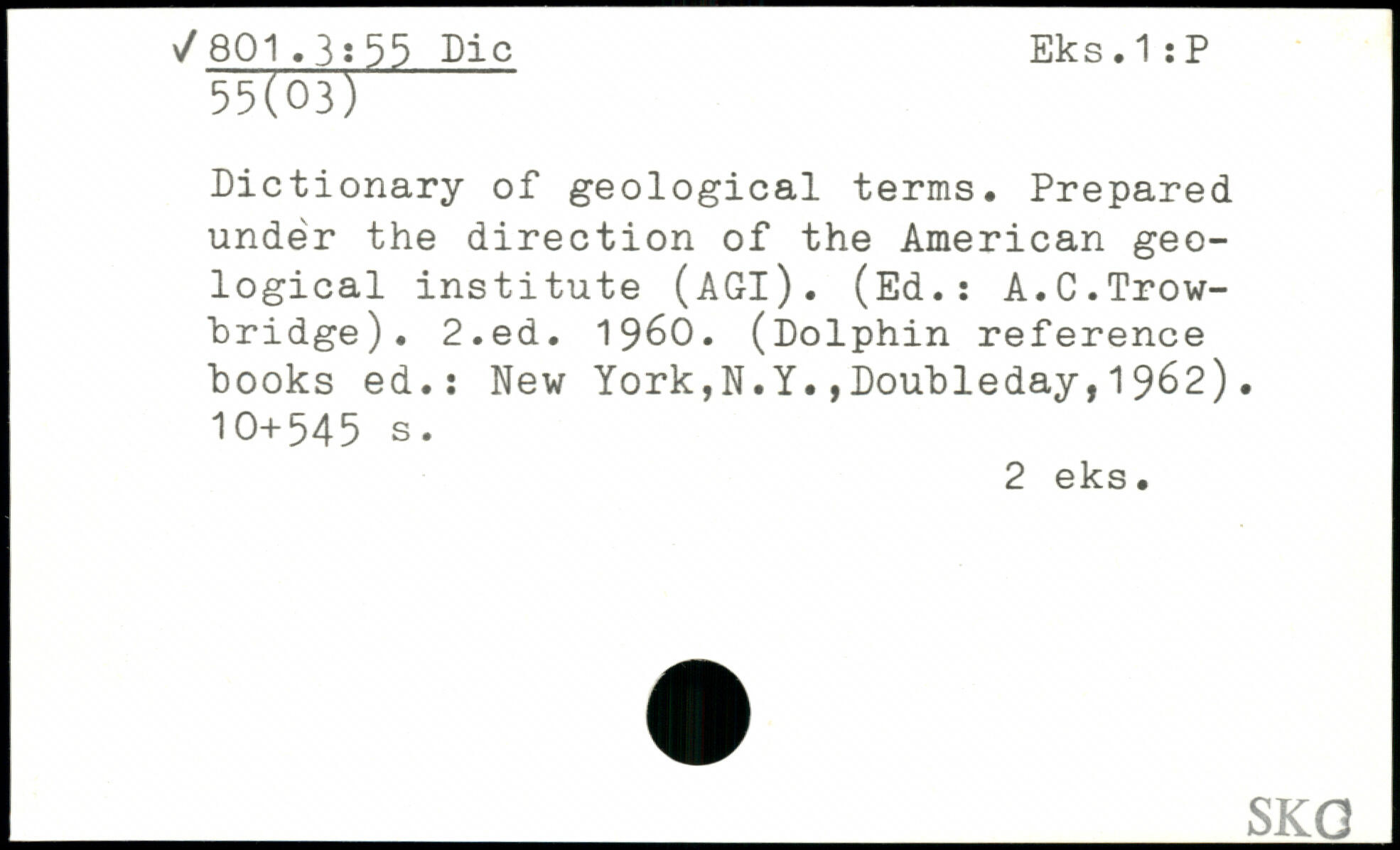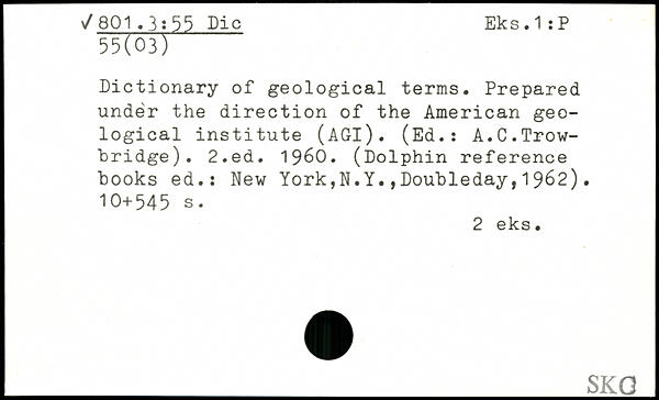 Dictionary of geological terms. Prepared under the direction of the American geological institute (AGl). (Ed.: A.C.Trowbridge).