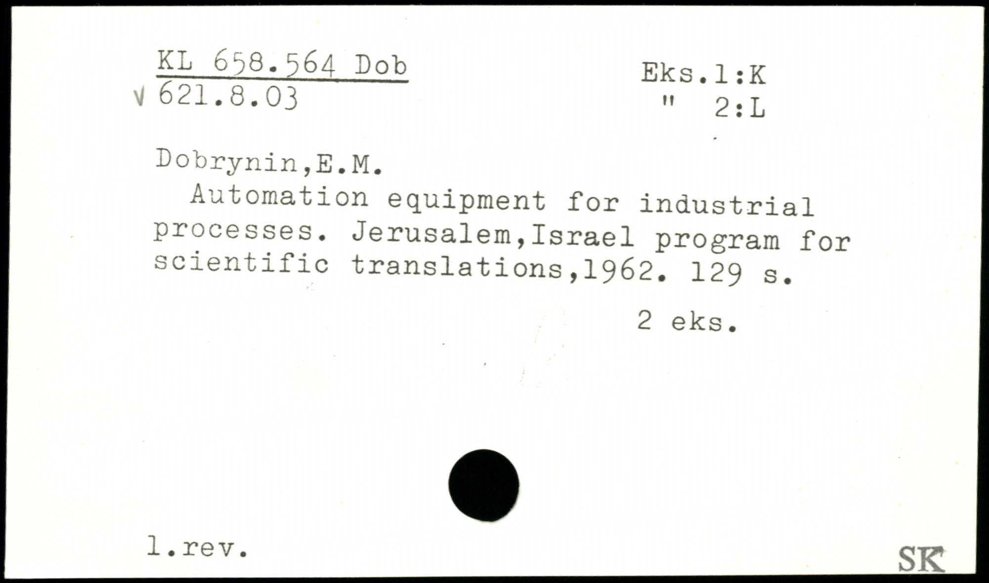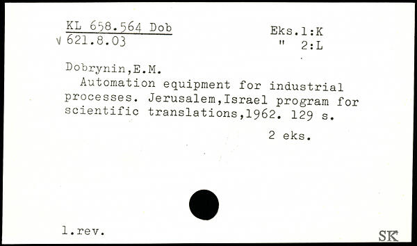 Automation equipment for industrial processes. Jerusalem,Israel program for scientific translations,1962.