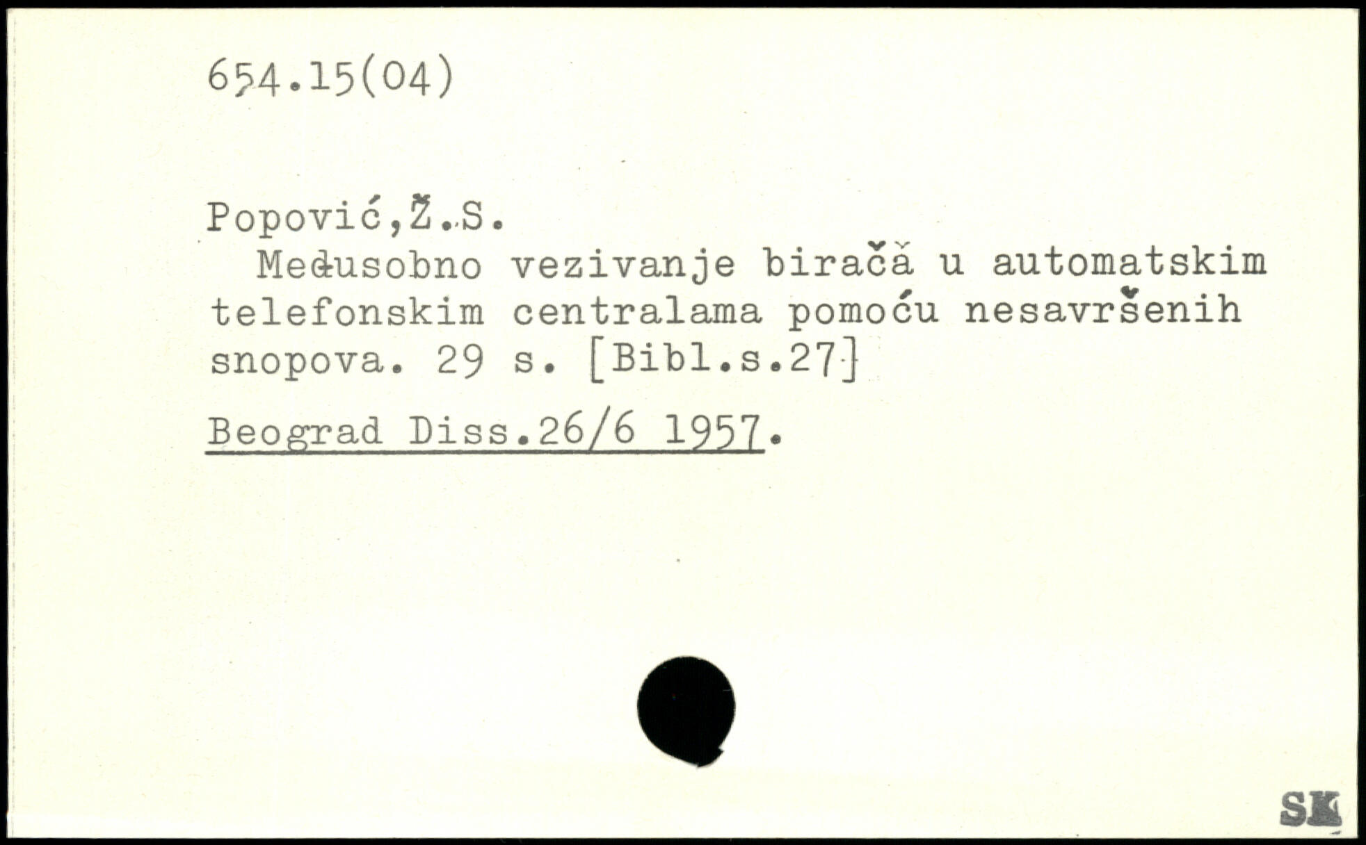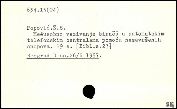 Medusobno vezivanje biracâ u automatskim telefonskim centralama pomocu nesavrsenih snopova.