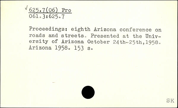 Proceedings! eighth Arizona conference on roads and streets. Presented at the University of Arizona October 24th-25th,19580 Arizona 1958