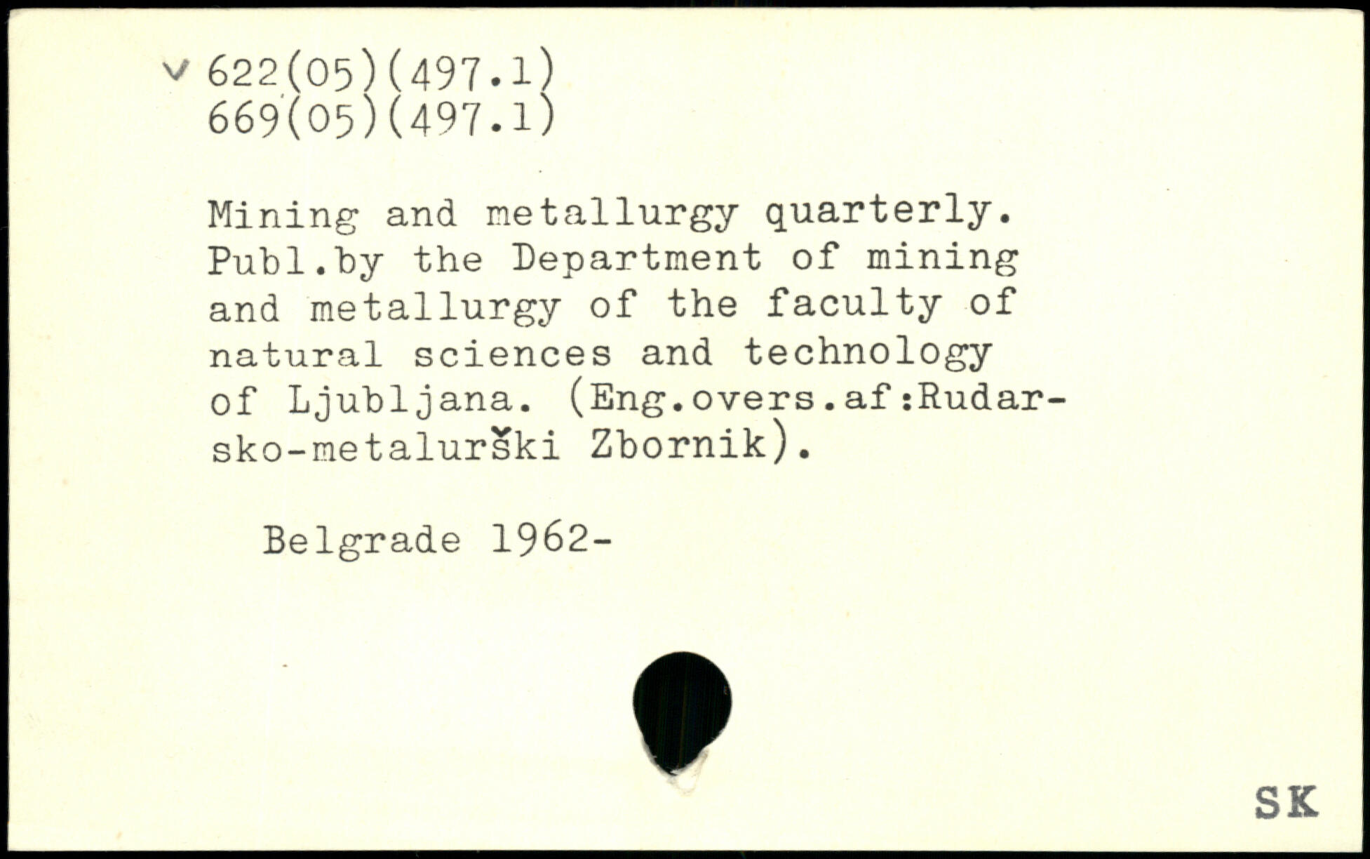 Mining and metallurgy quarterly.
