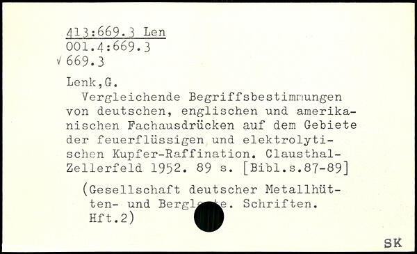 Vergleichende Begriffsbestimmungen von deutschen, englischen und amerikanischen Fachausdrücken auf dem Gebiete der feuerflüssigen und elektrolytischen Kupfer-Raffination. Clausthal-Zellerfeld 1952.