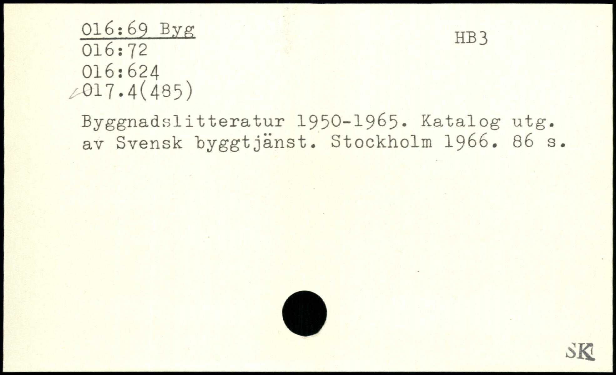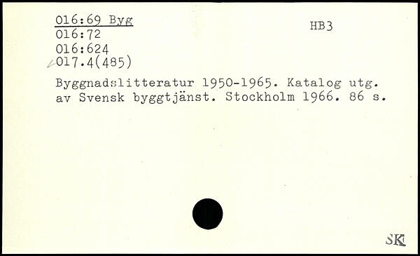 Byggnadslitteratur 1950-1965. Katalog utg. av Svensk Byggtjänst.