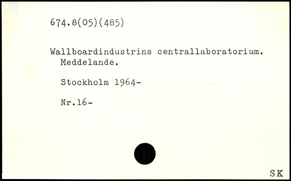 Wallboardindustrins centrallaboratorium. Meddelande.