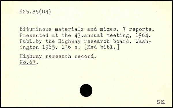 Bituminous materials and mixes. 7 reports. Presented at the 43-annual meeting, 19&4-