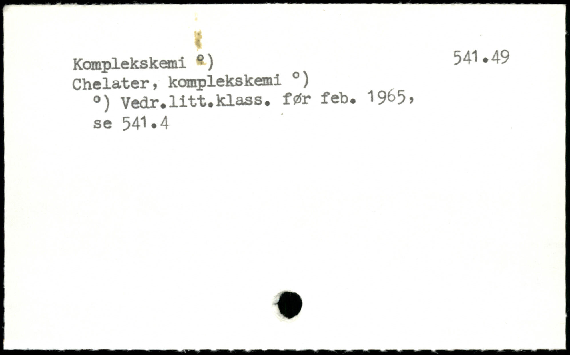 Kompleks kemi 541.49 Chelater, komplekskemi .) .) Vedr.litt.klass. før feb. 19^5, se 541. 4