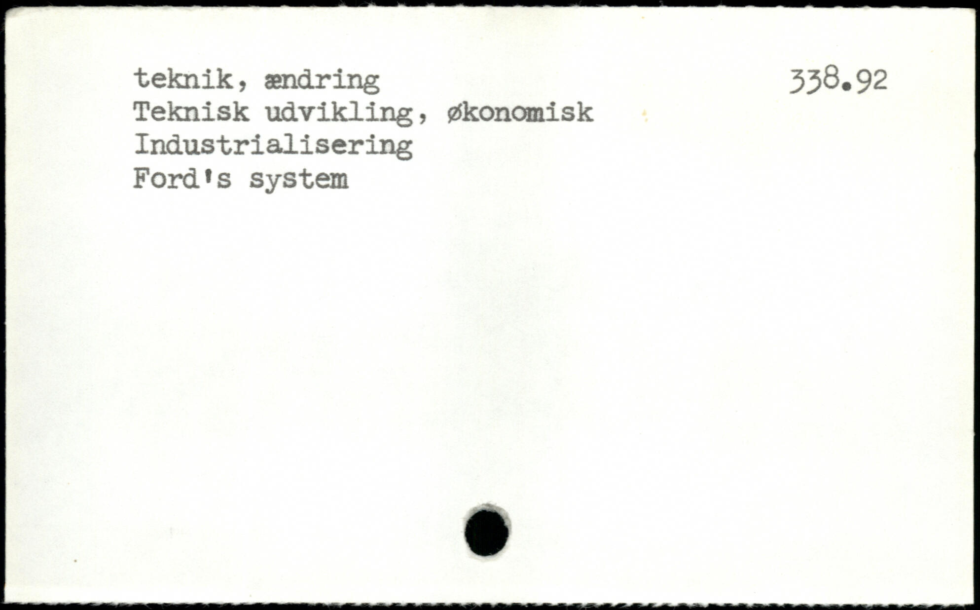 teknik, ændring 338.92 Teknisk udvikling, økonomisk Industrialisering Ford,s system