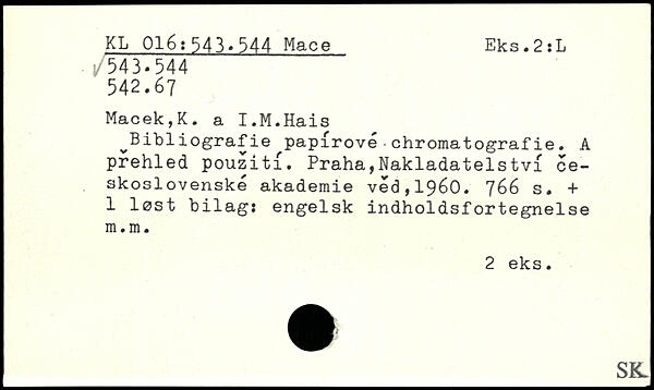 Macek,K. a I.M.Hais ^Bibliografie papirové.Chromatografie. A prehled pouziti.