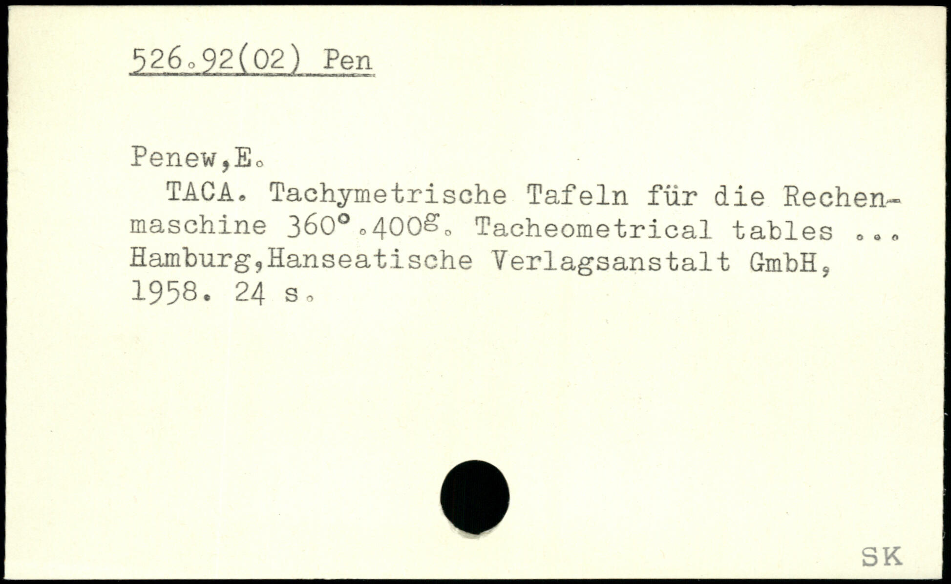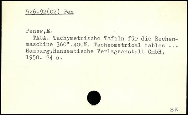 TACA. Tachymetrisehe Tafeln für die Rechenmaschine 360.o400&o Tacheometrical tahles ...