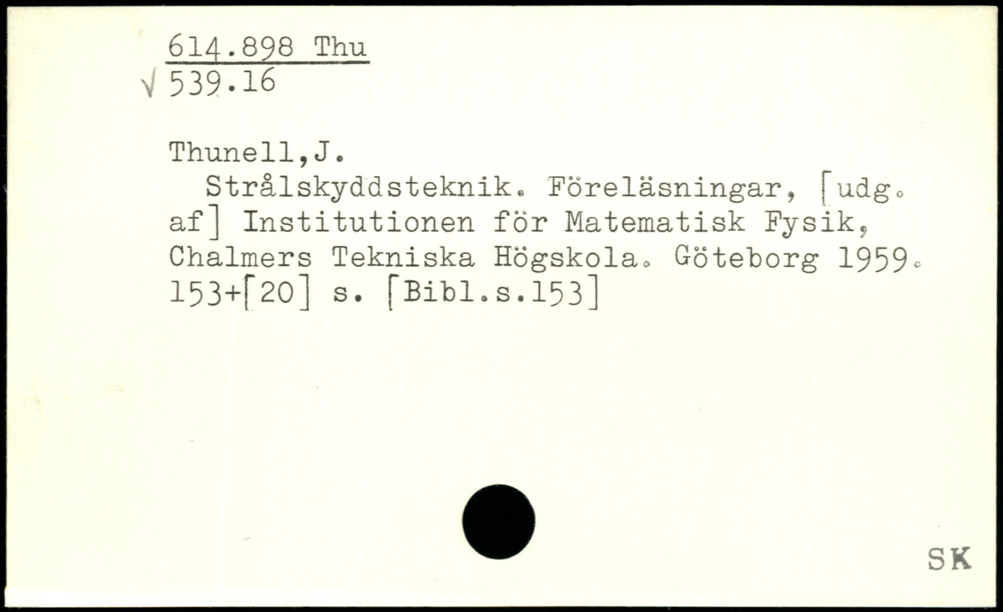 Strålskyddsteknik. Föreläsningar, fudgo af] Institutionen för Matematisk Fysik, Chalmers Tekniska Högskolao Göteborg 1959. 153+|"20] s.
