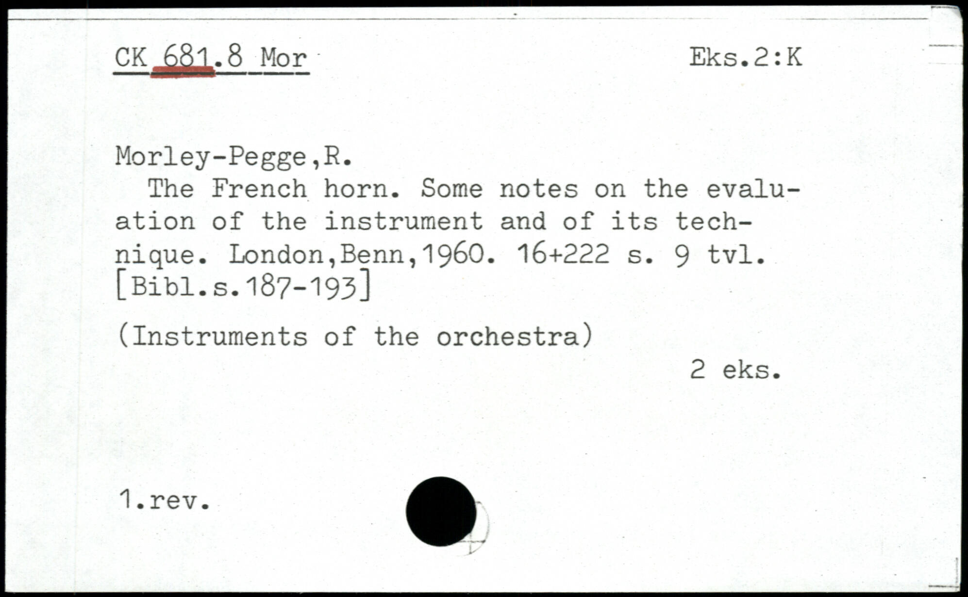 The French horn. Some notes on the evaluation of the instrument and of its technique.
