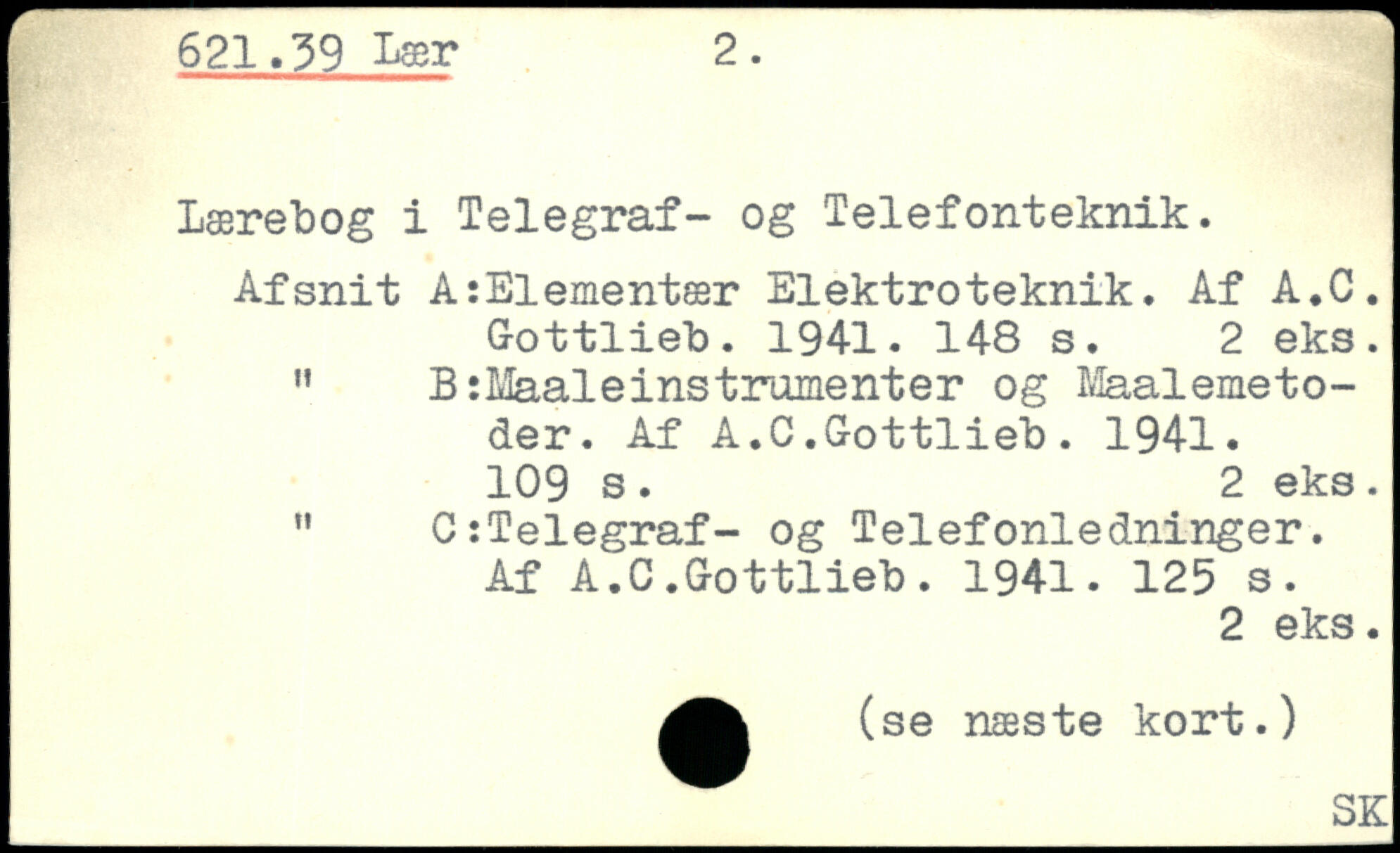 Lærebog i Telegraf- og Telefonteknik. Afsnit A:Elementær Elektroteknik. Af A.C. Gottlieb. 1941.