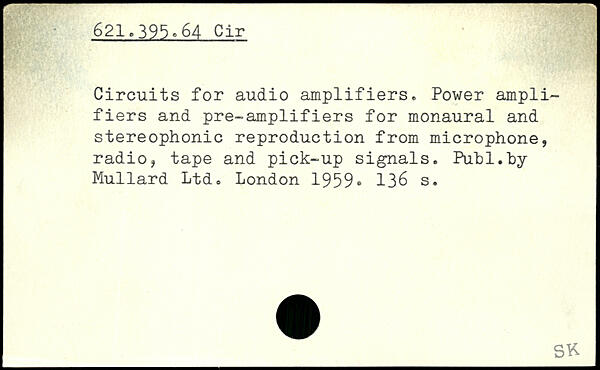 Circuits for audio amplifiers. Power amplifiers and pre-amplifiers for monaural and stereophonic reproduction from microphone, radio, tape and pick-up signals.