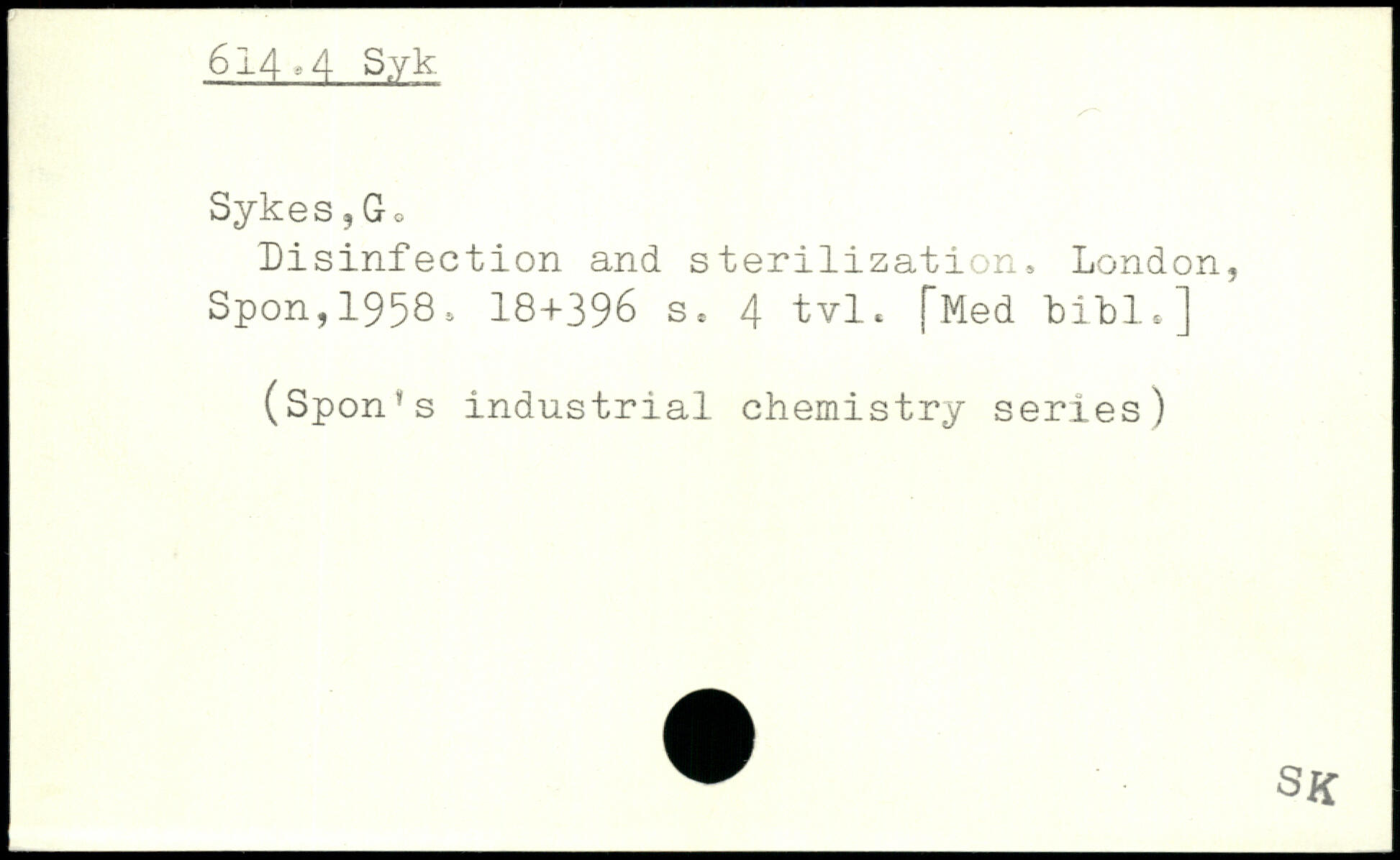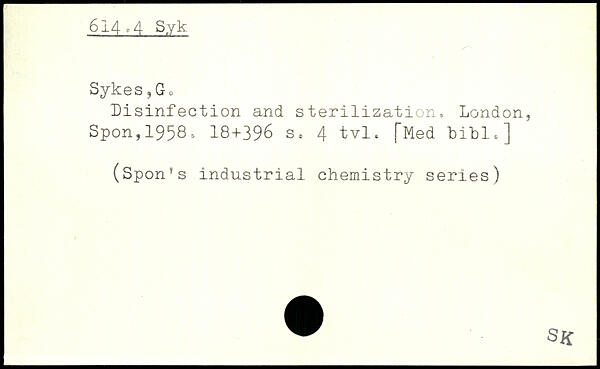 Disinfection and sterilization, London, Spon,1958, 18+396 s. 4 tvl. [Med bill,]