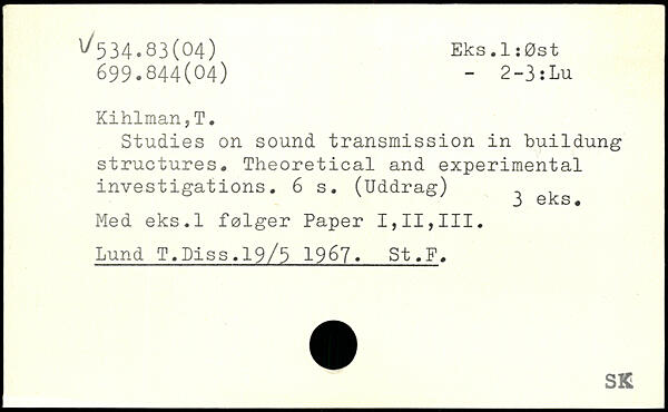 Studies on sound transmission in buildung structures. Theoretical and experimental investigations.