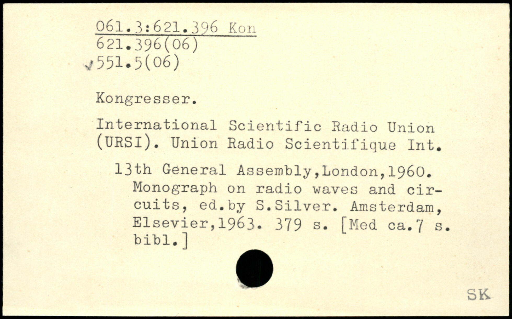 International Scientific Radio Union (URSl). Union Radio Scientifique Int. 13th