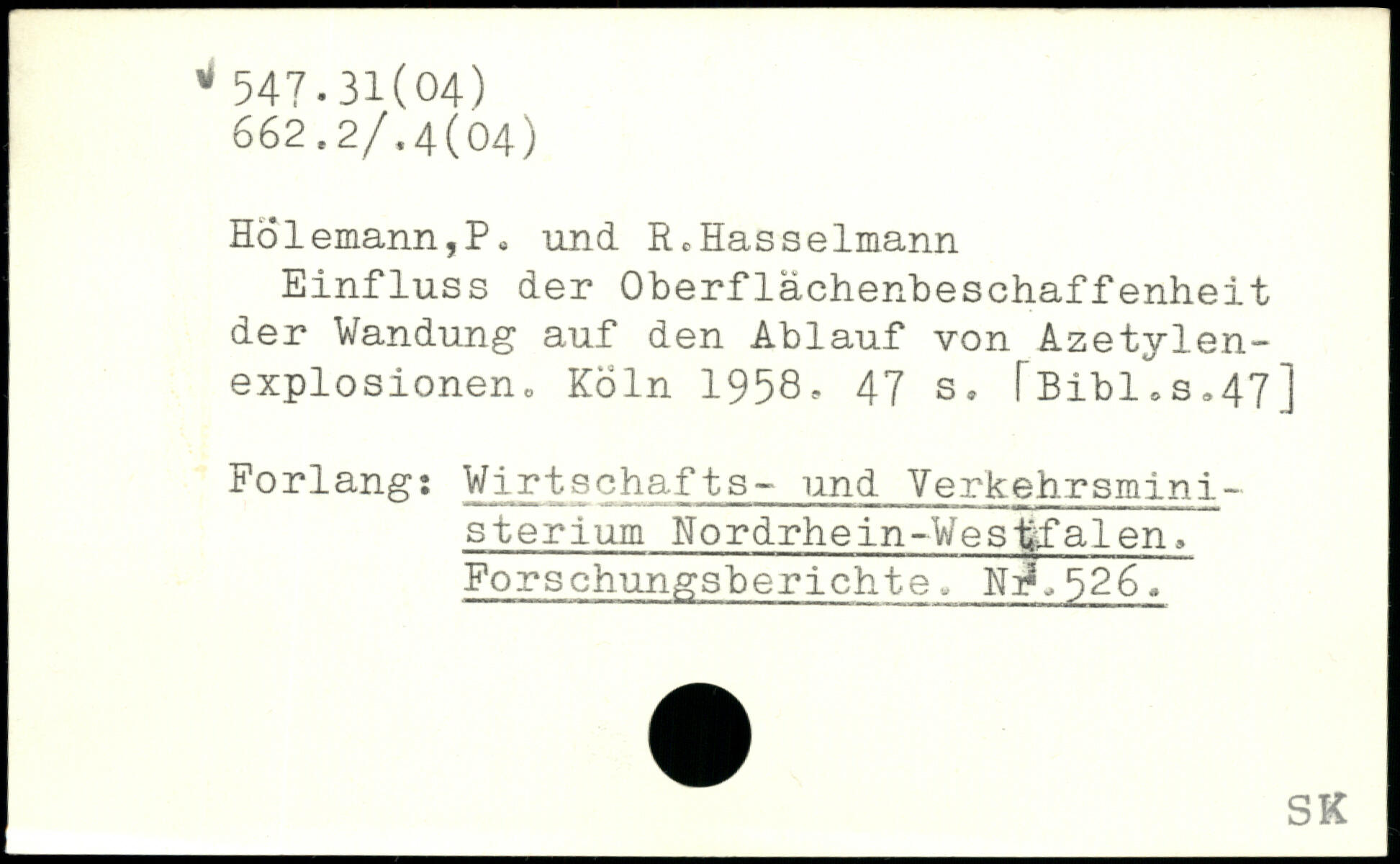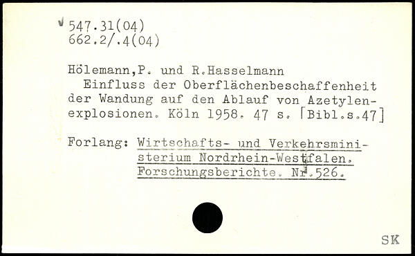 HÖlemann,P, und R,Hasselmann Einfluss der Oberflächenbeschaffenheit der Wandung auf den Ablauf von Azetylenexplosionen