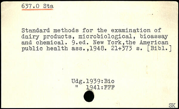 Standard methods for the examination of dairy products, microbiological, bioassay and chemical.